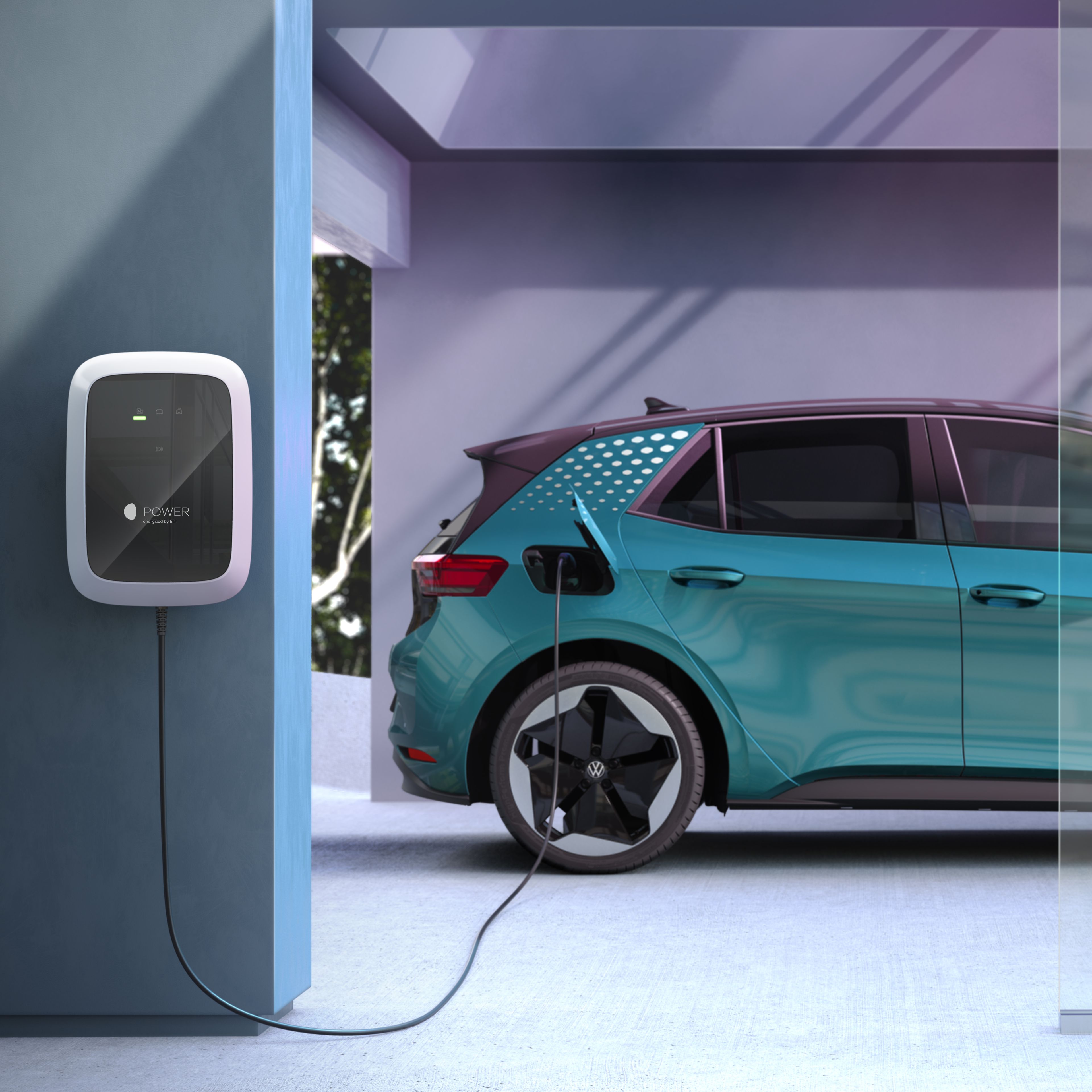 Carregue uma viatura elétrica com até 11 kW¹; basta ligar o cabo de 4,5 m incluído à viatura² e iniciar o carregamento. 1. A wallbox de até 11 kW suporta até 16 A por fase. Se uma viatura aceitar apenas carregamento monofásico até 32 A e for ligada a uma wallbox de até 11 kW (16 A por fase), apenas será possível carregar até 16 A, uma vez que o máximo suportado por fase na wallbox é 16 A e estará a utilizar apenas uma das três fases disponíveis. 2. Tenha em conta a potência disponível no local de instalação e a potência de carregamento aceite pela sua viatura.